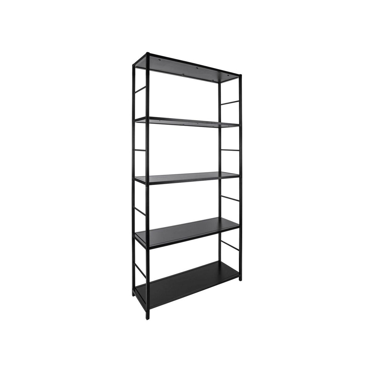 Cette bibliothèque saura trouver facilement sa place dans votre intérieur. Dotée de 4 étagères de rangement, elle sera votre allié pour ranger, ordonner et exposer.FICHE TECHNIQUE- Bibliothèque d'intérieur.- 5 étagères non réglables.- 7 niches de rangement.- Couleur : noir.- Modèle en métal.CARACTER