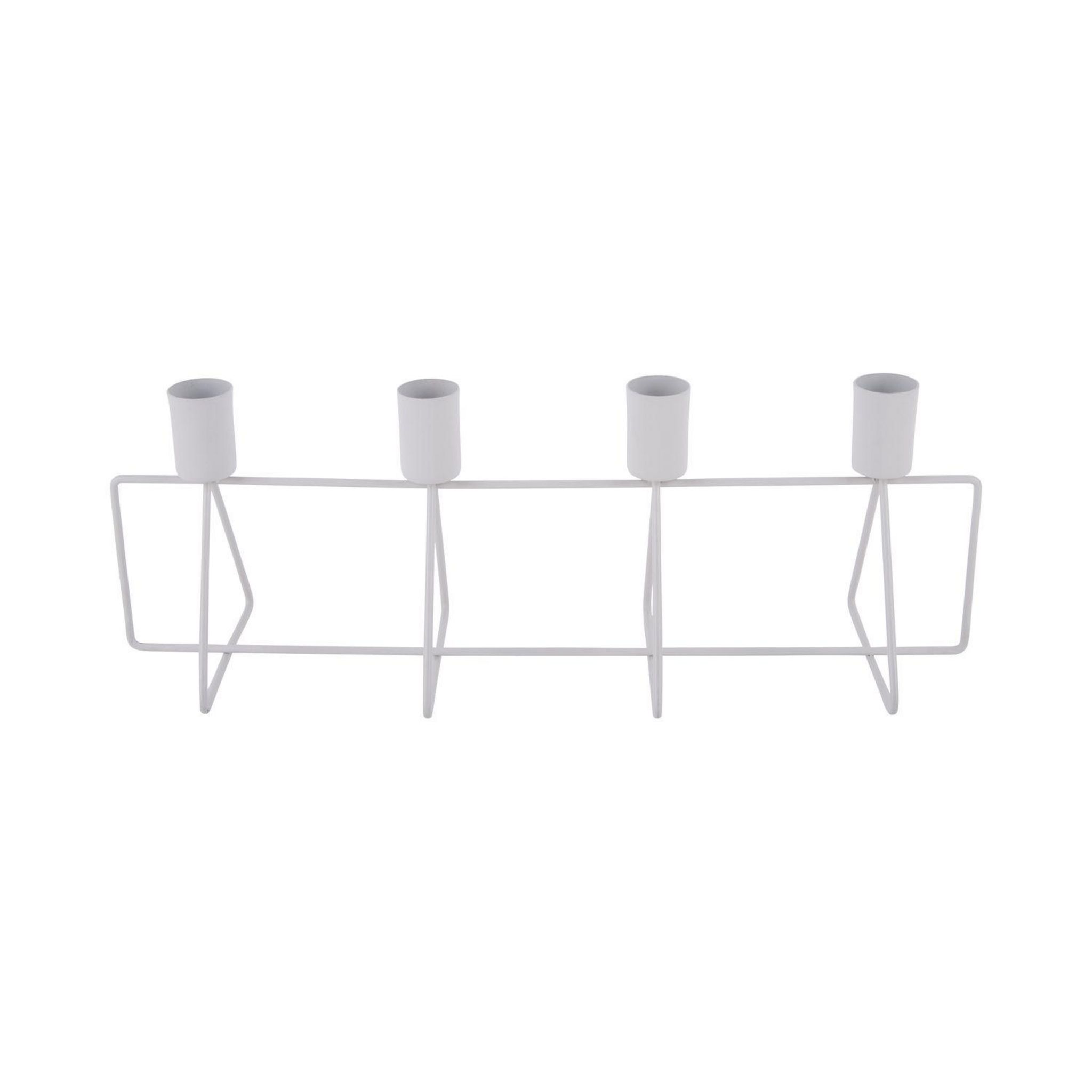 Affichez une décoration design et tendance avec ce bougeoir qui pourra accueillir vos quatre plus belles bougies. Ambiance tamisée au rendez-vous.FICHE TECHNIQUE- Bougeoir en métal.- Idéal pour quatre bougies longues.CARACTERISTIQUES TECHNIQUES- Dimensions : L. 40 x l. 9 x H. 25 cm.- Poids : 0,22 kg