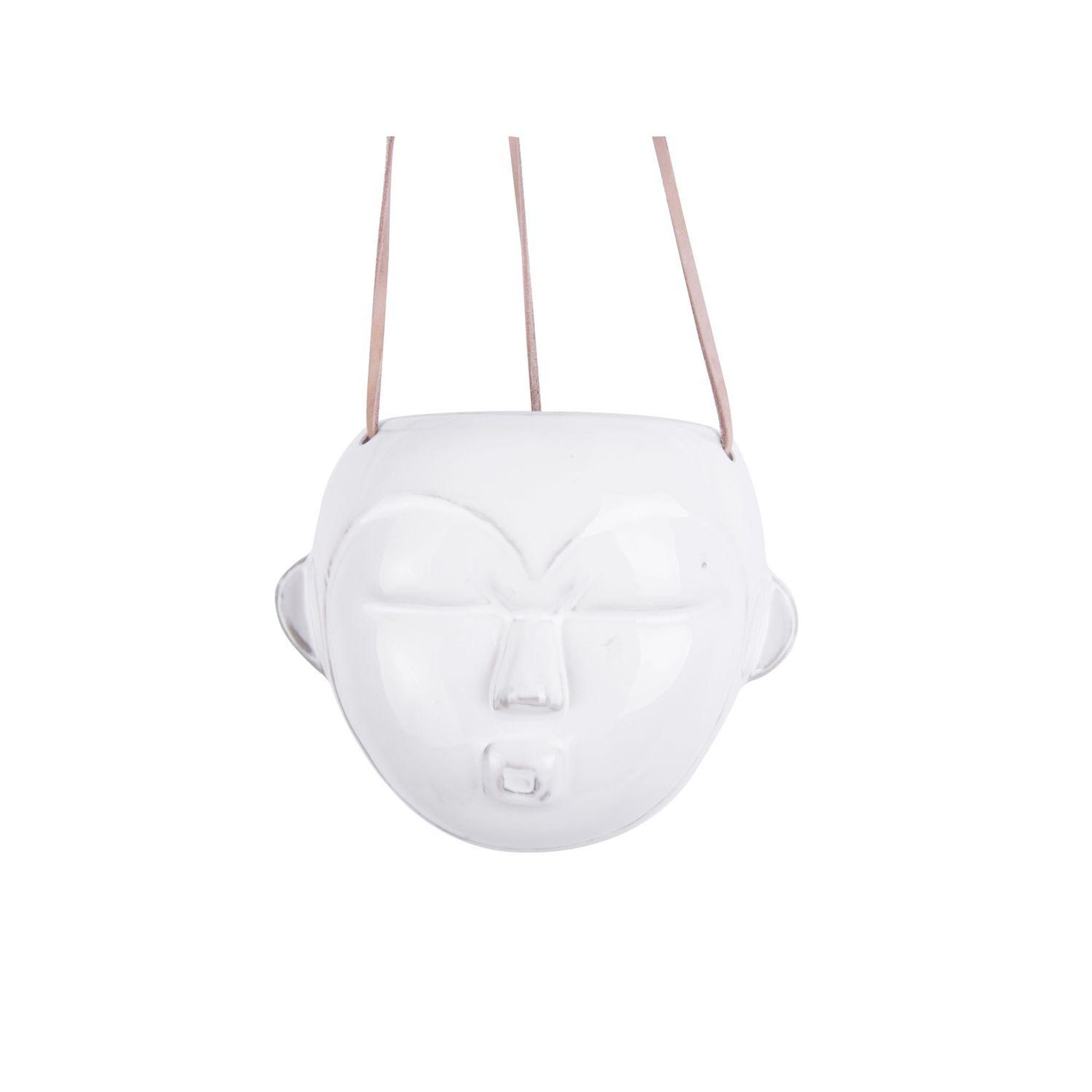 Cache-pot rond à suspendre en céramique - H.18cm - Blanc