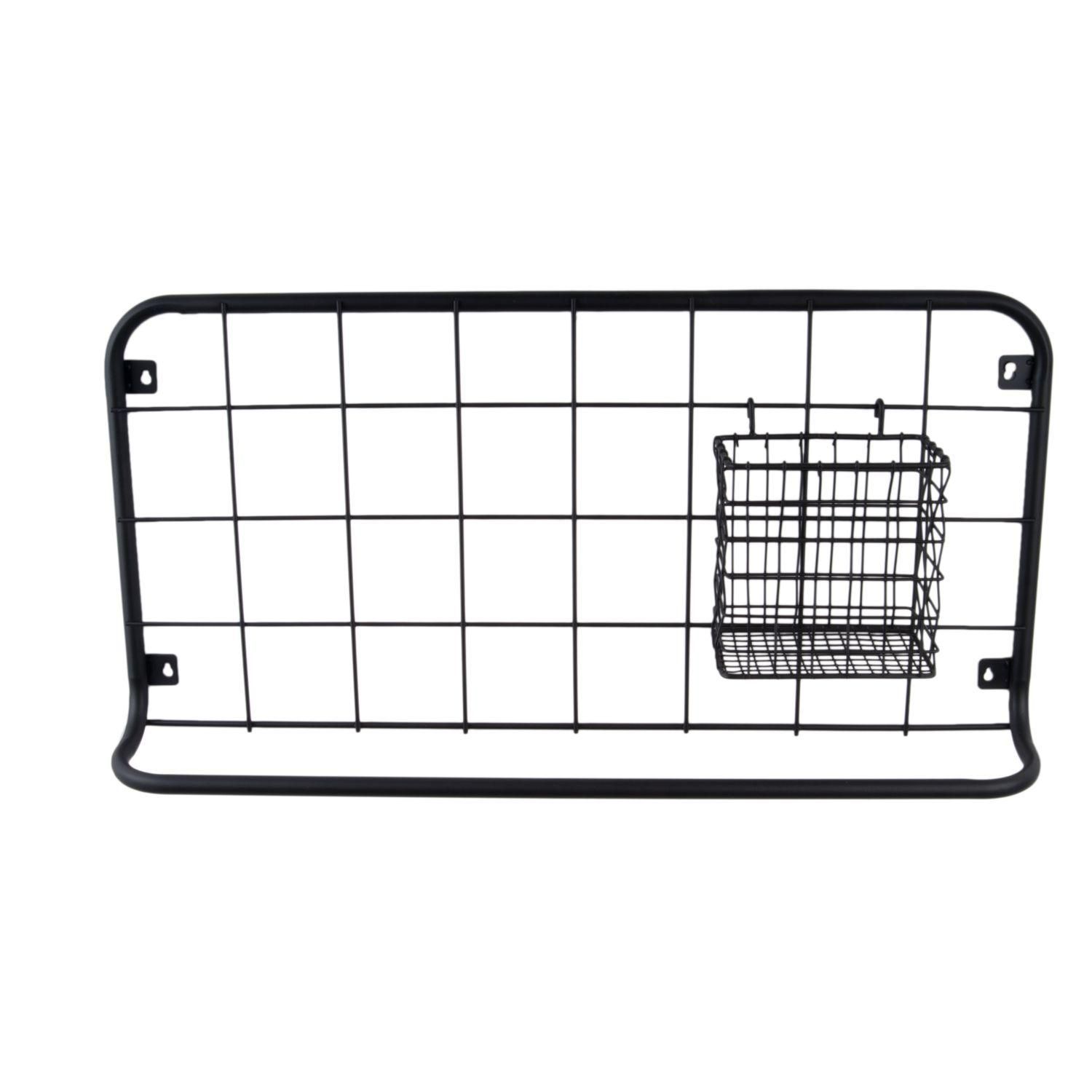Etagère de cuisine Open Grid avec crochets et panier de rangement - Largeur 30 cm x Longueur 60 cm - Noir