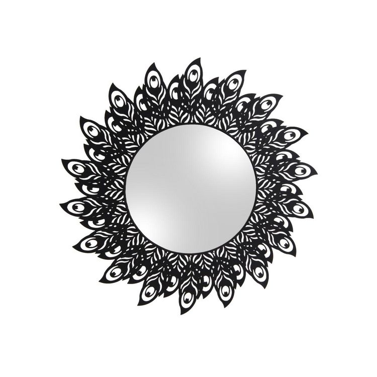 Miroir en métal filaire Plume - Diam. 60 cm - Noir