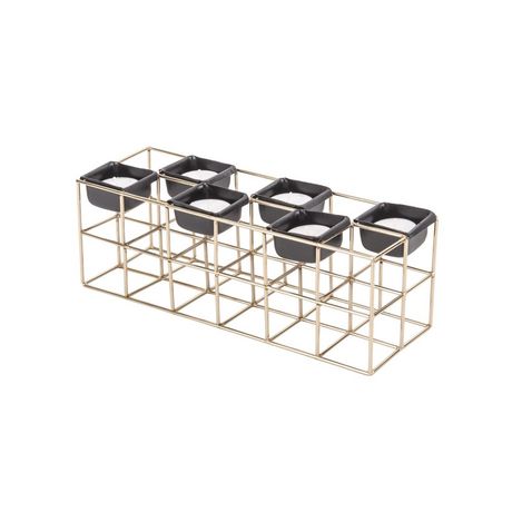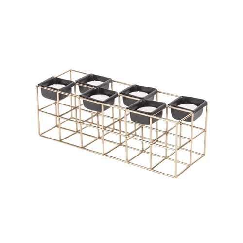Illuminez votre décoration avec ce photophore à la structure contemporaine. FICHE TECHNIQUE- Photophore en fer.- Idéal pour six bougies chauffe-plat.CARACTERISTIQUES TECHNIQUES- Dimensions : L. 30,5 x l. 10 x H. 10 cm.- Poids : 0,73 kg.