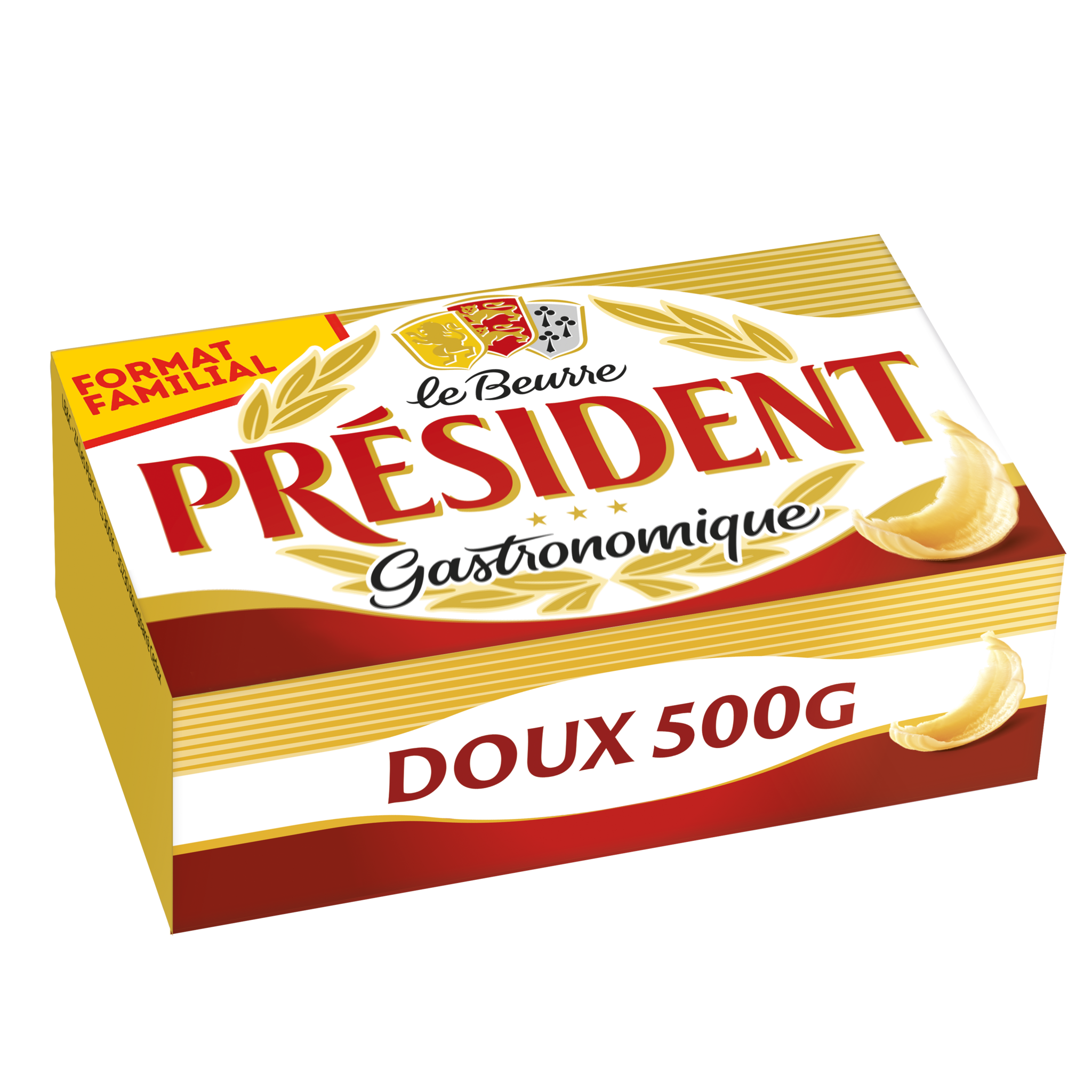 Fabriqué en Bretagne ou en Normandie, le beurre gastronomique Président, au goût frais et unique s'utilise en tartine ou en cuisine pour révéler toutes les saveurs de vos plats.