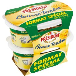 Beurre pasteurisé demi-sel 80% MG Beurre tendre Président demi sel 80% MG beurrier 250g x 2