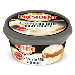 Savourez la Crème de Brie Goût Truffe de Président : une crème onctueuse au goût subtilement savoureux et à la texture incroyablement fondante.