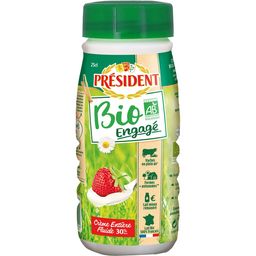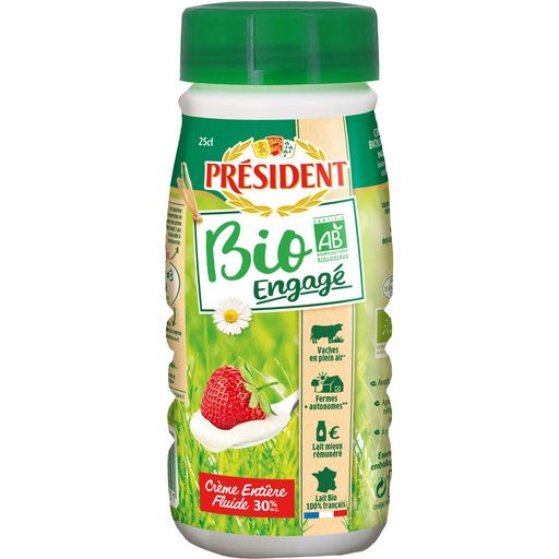 Crème entière biologique stérilisée UHT Avec la Crèmerie Bio de Président, vous choisissez une crème Bio savoureuse issue d'une filière durablement engagée auprès des éleveurs.