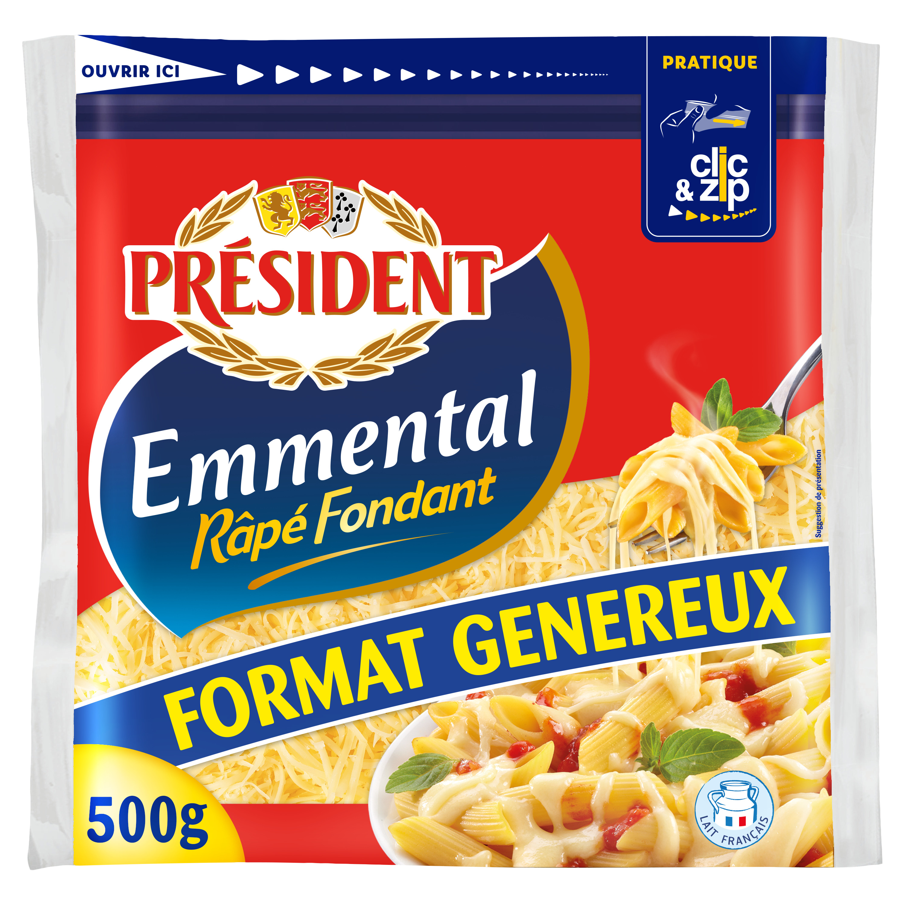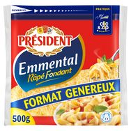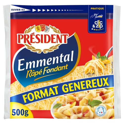 Un bon emmental râpé, c'est d'abord un bon morceau d'Emmental ! Moelleux et fondant en bouche, l'Emmental Râpé Président révèle un bon goût fruité. Le complice idéal de vos bons petits plats !
