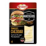 6 tranches de Cheddar à l’épaisseur généreuse, pour réaliser chez-vous de délicieux burgers, comme à la Brasserie !