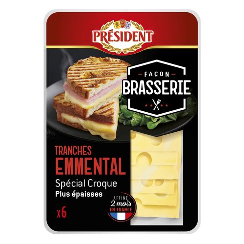 6 Tranches d'Emmental à l'épaisseur généreuse pour réaliser chez vous de délicieux Croque-monsieur, comme à la Brasserie !