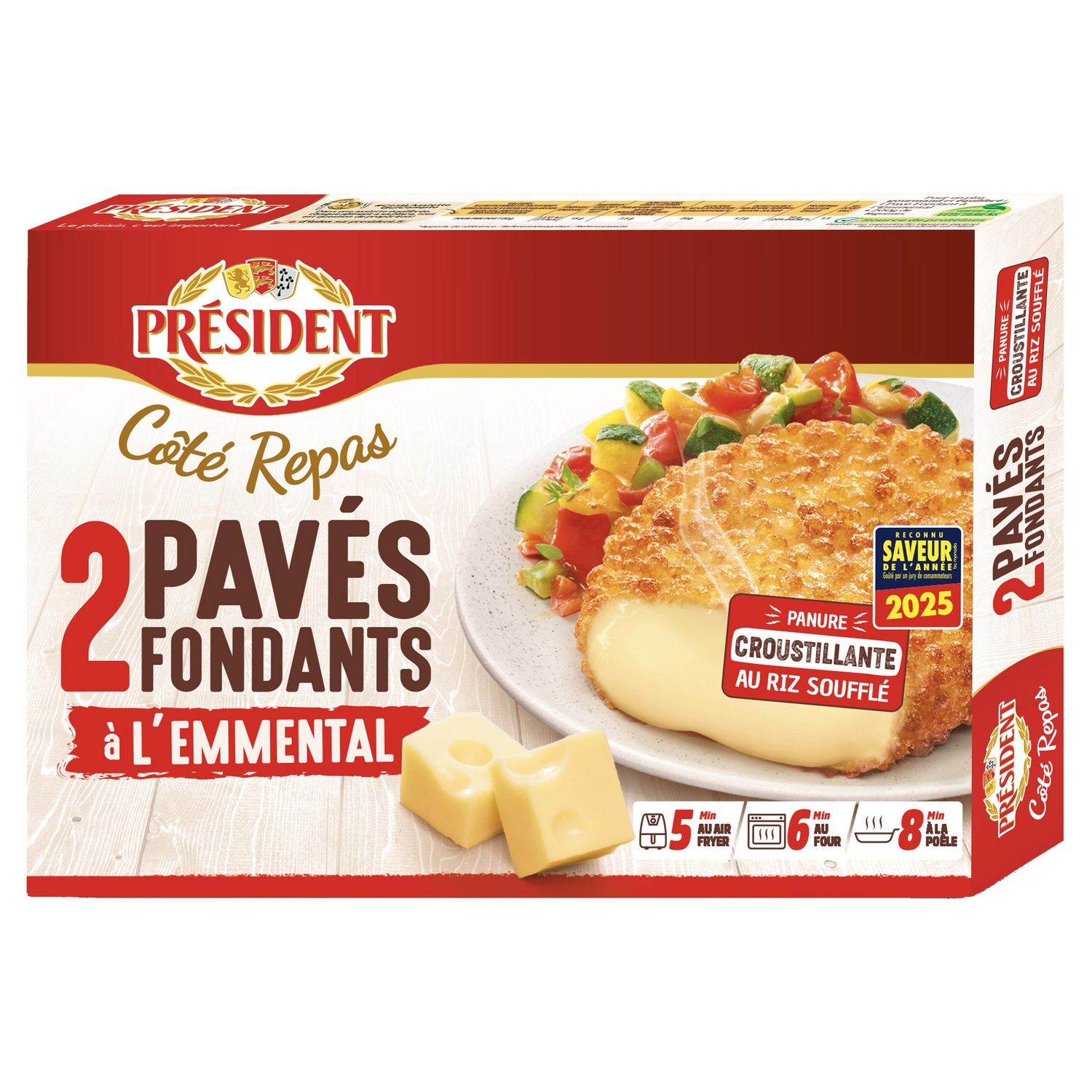 Pour un pavé bien croustillant, faites dorer à la poêle à feu moyen 4 minutes de chaque côté ou au four à 200°C pendant 6 minutes sans les retourner. Pour préserver le croquant et la qualité des pavés fondants à l'emmental, Président vous déconseille le réchauffage au four à micro-ondes.