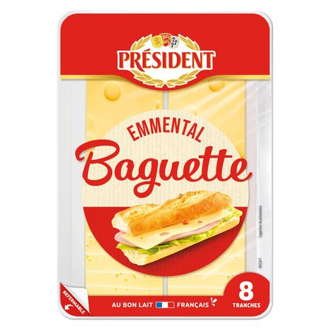 Découvrez les tranches baguette Président. Des tranches d'un emmental tendre et fruité dans un format adapté aux baguettes de pain pour des sandwichs gourmands.