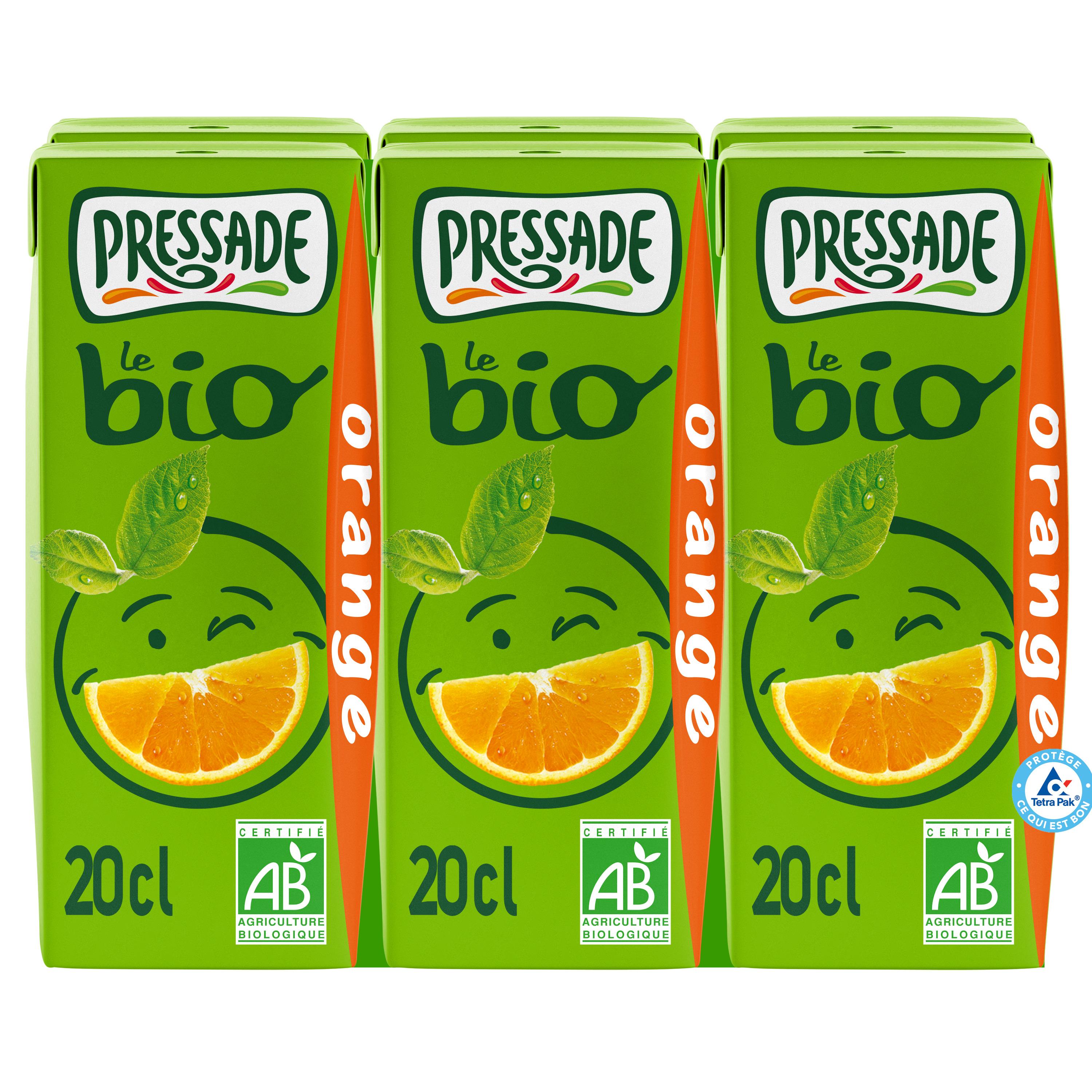 Retrouvez votre marque bio préférée avec l'incontournable jus d'orange Pressade Le Bio. Ce nectar, doux et sans pulpe, offre à toute la famille un goût de fruit authentique, gourmand et accessible à tous