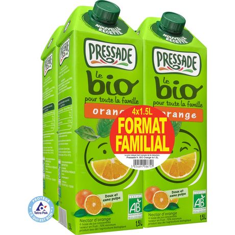 La 1ère gamme BIO pour toute la famille certifiée «Agriculture Biologique». Des recettes conçues pour tous : au bon goût de fruits, douces et sans pulpe. Un format 1.5L familial et un emballage pratique qui préserve le goût et la qualité de nos produits. Nectar de jus d'orange à base de jus concentrés issus de l'agriculture biologique
