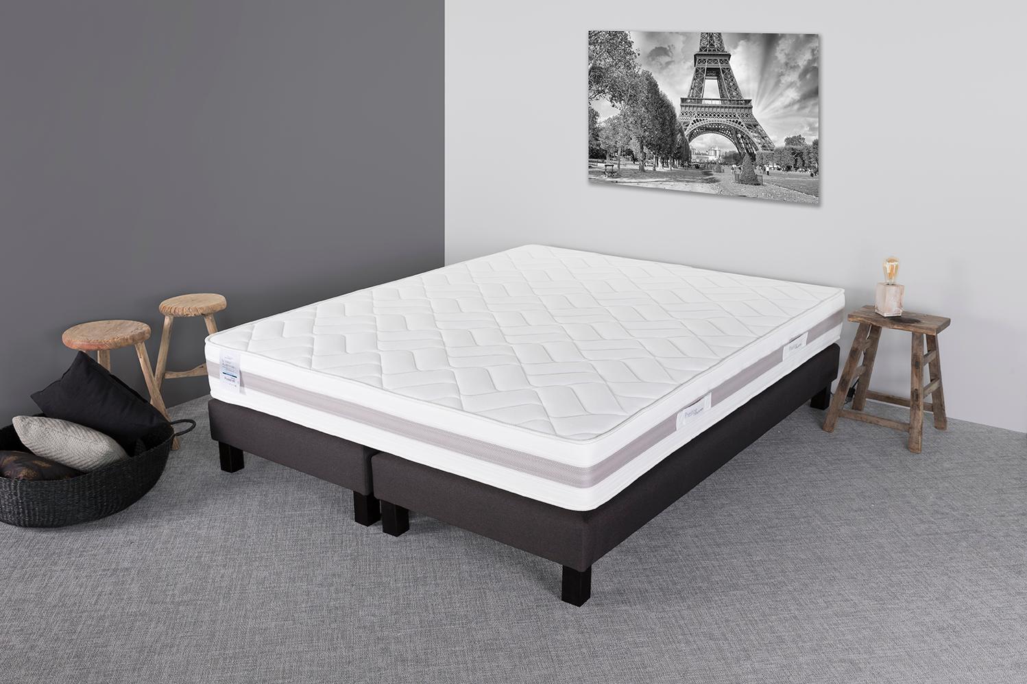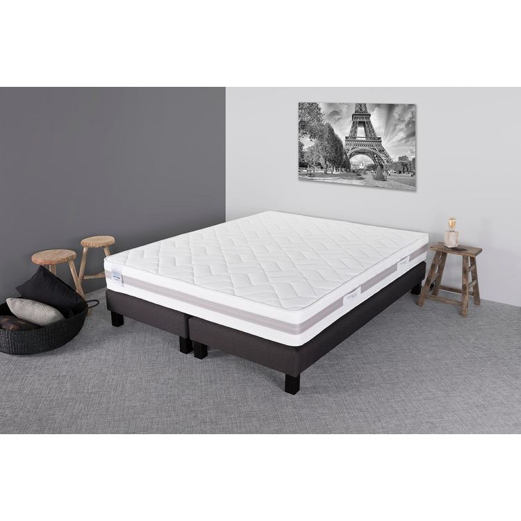 Ensemble matelas ressorts MORPHEE + sommier déco gris 180x200 cm