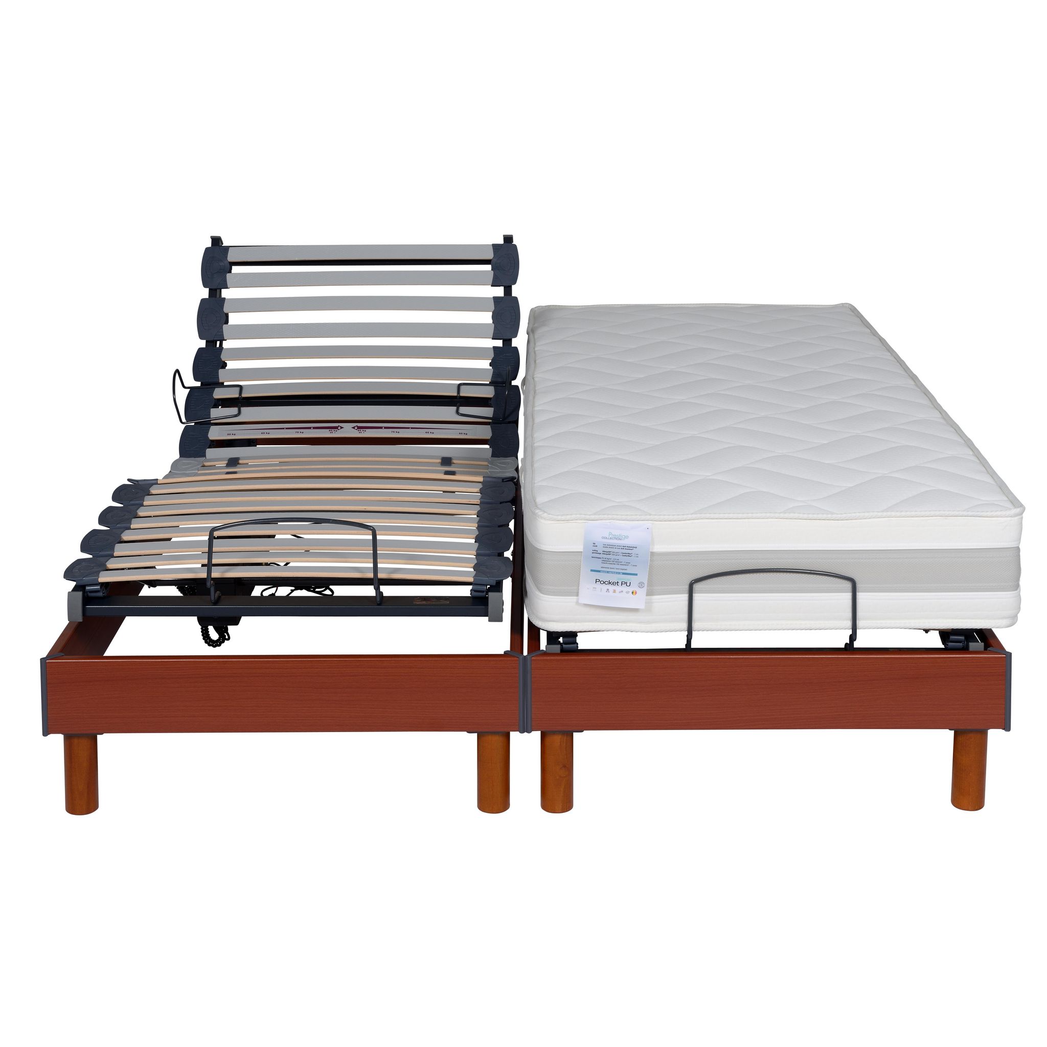 Magnifique ensemble TPR (tête et pieds relevables) ORTHOFLEX, garantie 5 ans. Cet ensemble TPR ORTHOFLEX vous donnera une grande satisfaction de par ses deux fonctions têtière et déclive qui permettent de bouger facilement la tête et les jambes, le réglage de la fermeté, ses 7 zones de confort, sa mousse polyuréthane de densité 35 kg/m3 et ses 280 ressorts/m2, la télécommande qui permet à chaque matelas d'être indépendant de l'autre, son moteur de qualité d'origine Allemande. Cet ensemble ORTHOFLEX est composé de 2 matelas 80 x 200 cm avec un accueil tonique et un soutien ferme, sans oublier ses 280 ressorts/m2 et son accueil en mousse polyuréthane d'une densité de 25 kg/m3. Au niveau des matelas, ils disposent d'un traitement anti-acarien et sont hypoallergéniques. Préparez-vous à améliorer vos nuits grâce à cet ensemble TPR ORTHOFLEX 2x80x200cm ! Décliné uniquement dans ce coloris, retrouvez d'autres ensembles TPR sur le site Auchan.fr