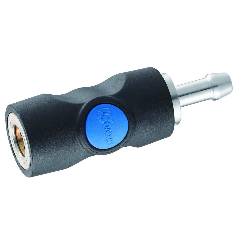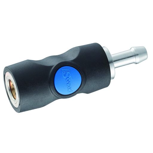 Forme ergonomique et compacte, débit optimisé, perte de charge maitrisée, étanchéité du raccord assurée par joint plat. Corps en acier traité et matériau composite aux caractéristiques mécaniques renforcées. Résiste à l',abrasion, aux chocs, à l',écrasement, aux vibrations et à la corrosion. Diamètre du passage d',air : 6 mm. Pression nominale : 12 bar. Débit d',air sous 6 bar : 833 L/mn.