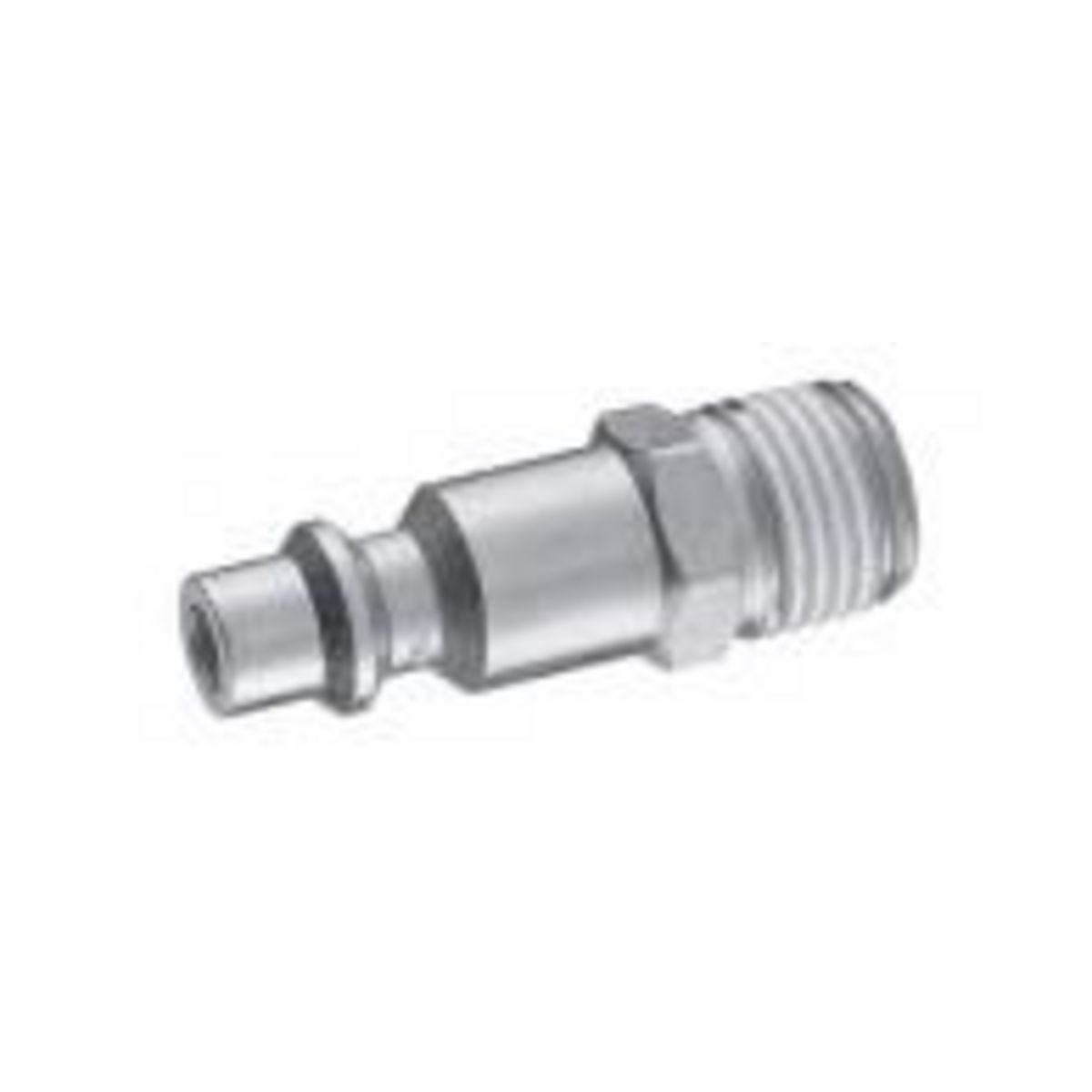 Raccord rapide mâle - cannelé pour tuyau Ø, 8 mm. Dimensions : 50 mm.Embout en acier traité avec protection anti-corrosion et anti-abrasion, constance des dimensions et des tolérances, prétéflonnage des filetages mâles.Diamètre du passage d',air : 6 mm. Pression nominale : 16 bar.