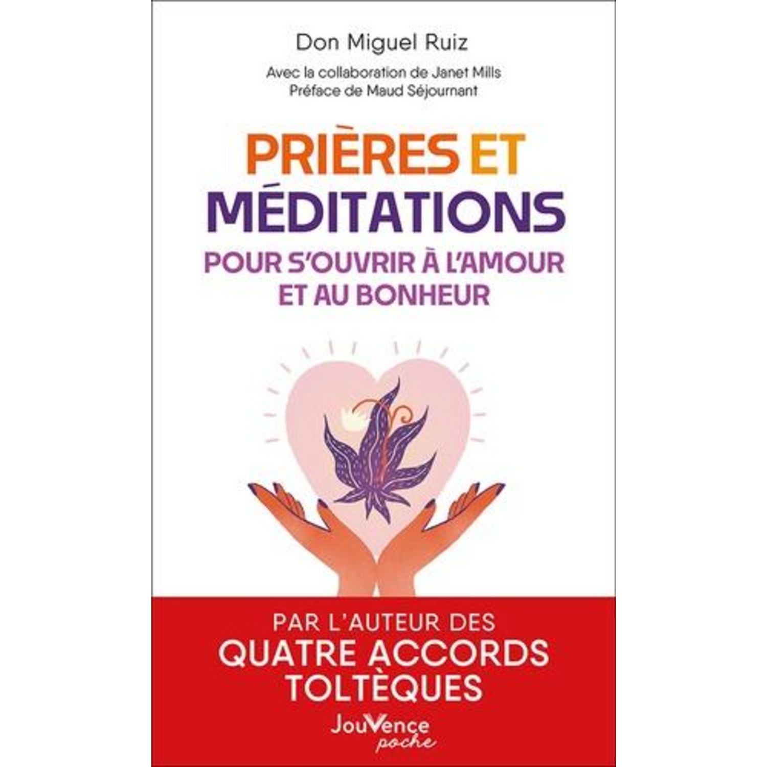 Laissez-vous guider par la sagesse de Don Miguel Ruiz et ouvrez votre coeur à la puissance des prières et méditations. Quand nous prions, nous utilisons notre voix humaine, mais nous l'alignons sur la voix de notre coeur, et c'est cela qui rend la prière si puissante . Don Miguel Ruiz Et si la clé du bonheur résidait dans notre capacité à nous ouvrir à l'amour ? Dans cet ouvrage inspirant, don Miguel Ruiz vous invite à une profonde transformation intérieure à travers l'expérience de la prière et de la méditation. Chaque page est une invitation à entrer en contact avec vous-même et avec l'univers, à cultiver la gratitude, le pardon et la sérénité. En explorant des thèmes essentiels tels que l'amour, la vérité ou le silence, ce livre vous guide sur le chemin de l'éveil et vous conduit à la paix intérieure, la joie intense, et même l'état de grâce.