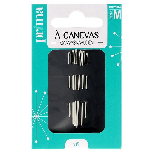 6 aiguilles à canevas. Ces aiguilles à bout rond et au chas large sont conçues pour le canevas.