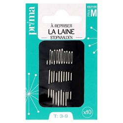 10 aiguilles à repriser pour laine. Taille n°3, 5 et 9. Ces aiguilles épaisses au chas large sont idéales pour repriser ou réparer des vêtements en laine.