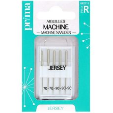 5 Aiguilles pour machine à coudre, tissus Jersey. Tailles 70 et 90. Talon plat. Aiguille à bout arrondi pour les tricots et tissus maille. Choisissez votre aiguille en fonction de l'épaisseur de votre tissu. Plus le numéro est petit, plus l'aiguille est fine.