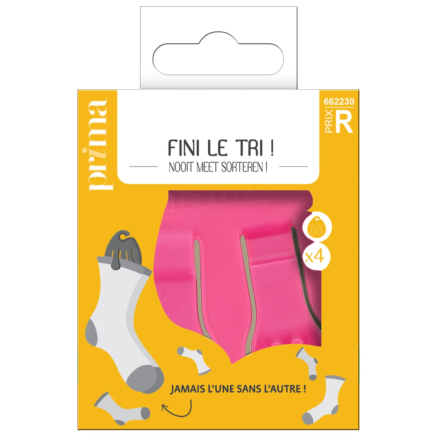 Les clips FINI LE TRI ! Développés par PRIMA, ils vous permettent d'assembler vos chaussettes pour le lavage et ainsi d'éviter de les perdre. Les clips vous permettent également de les faire sécher ensemble et donc de gagner du temps. Dites STOP aux chaussettes "Orphelines" !