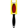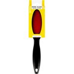 Brosse tous textiles double face. Idéal pour retirer en un seul geste cheveux, poils et poussières, sur toutes les surfaces textiles : vêtements, canapés, sièges de voiture. Flèches sur le manche pour indiquer le sens d'utilisation de la brosse.