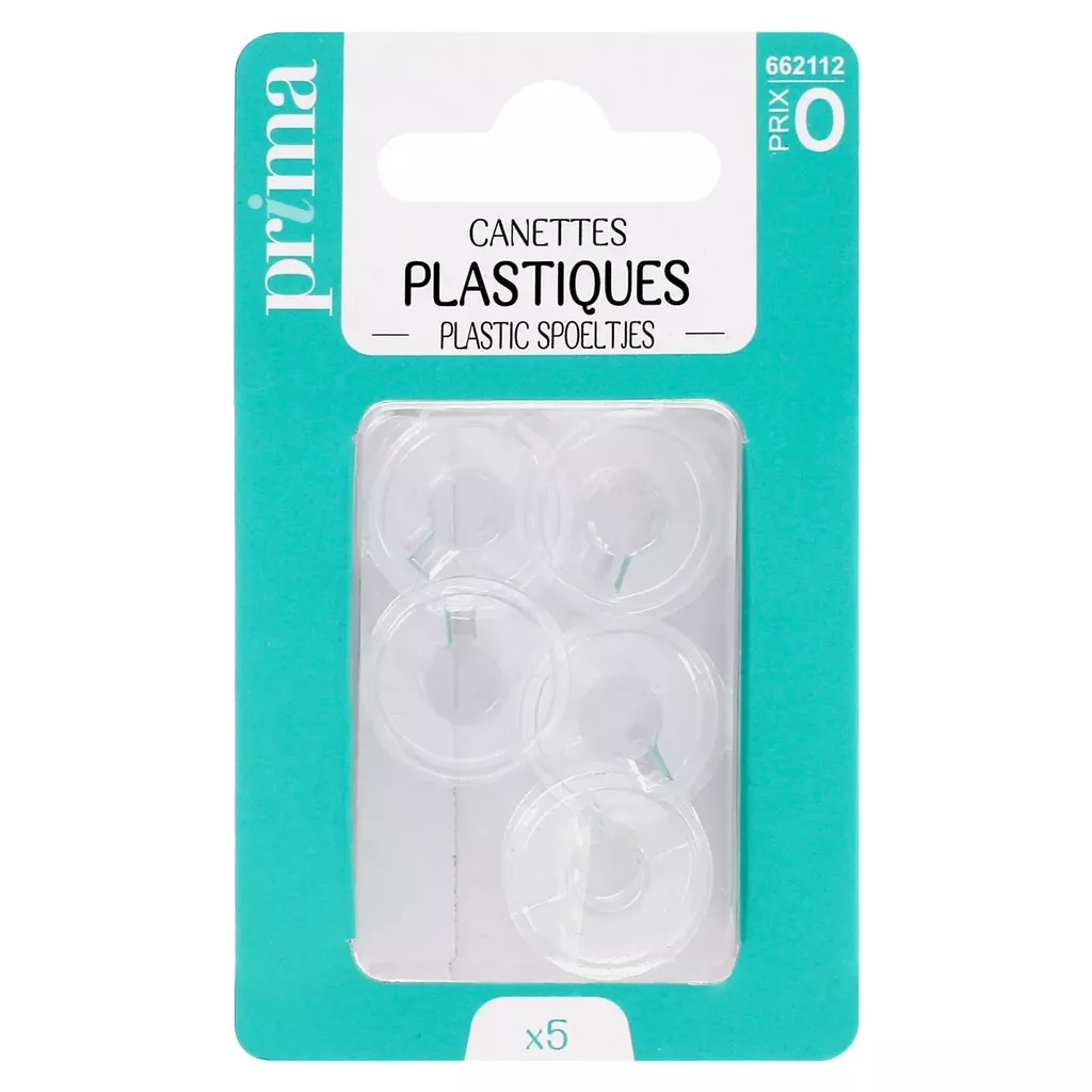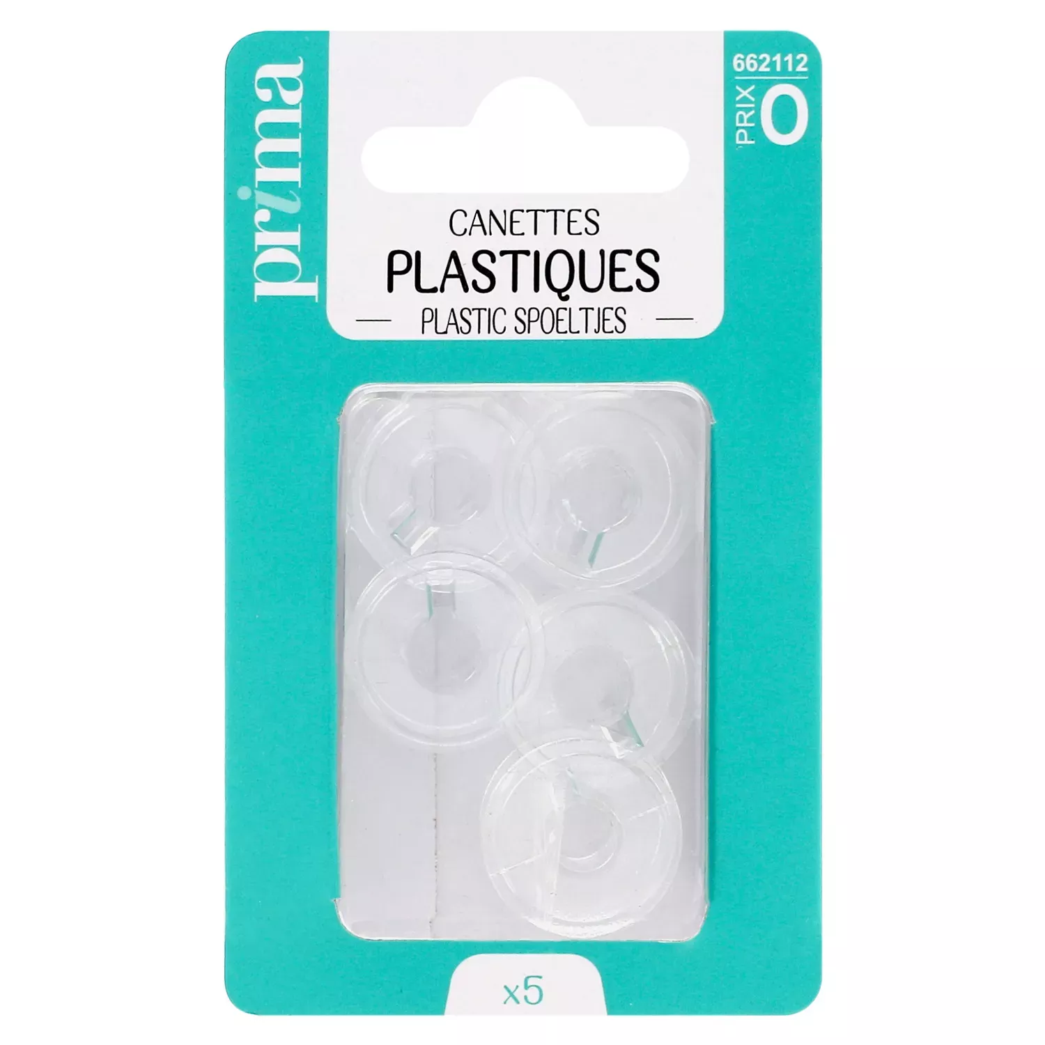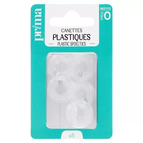 5 canettes en plastique. Ce modèle standard convient à la majorité des machines à coudre.