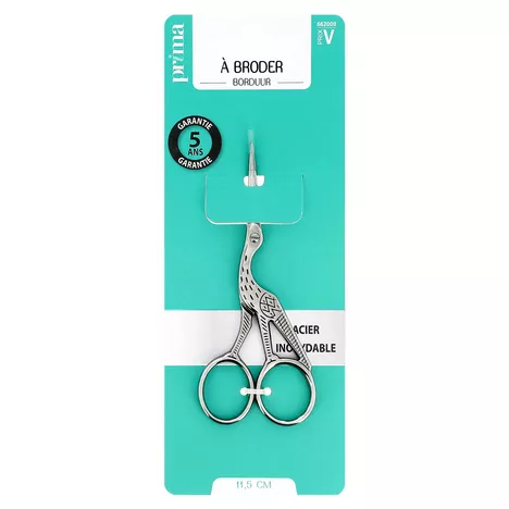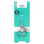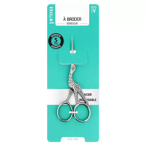 Ciseaux à broder en Acier inoxydable. 12 cm. Ces ciseaux aux lames pointus et effilées ont recommandés pour les travaux de broderie. Les anneaux de taille égale sont adaptés pour les droitiers comme pour les gauchers. Ces ciseaux sont garantie 5 ans en cas de casse (vis et lames) à partir de la date d'achat dans les conditions normales d'utilisation (travaux de couture de textiles uniquement).