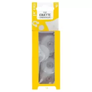 4 Clips pour couette. Pour maintenir la couette en place dans la housse toute la nuit. Se clipsent aux quatre coins de la couette. Elle ne bouge plus sous la housse. Ils vous aident également à maintenir la housse en place au moment de l'enfilage.