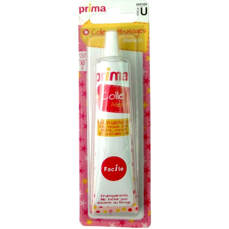 Colle multi-usage - Cette colle permet d'assembler aussi bien le cuir, le tissu, le caoutchouc, le bois, la céramique, le cellophane, le métal, le PVC, le papier et le carton. 30 g - Résiste au lavage 30°.