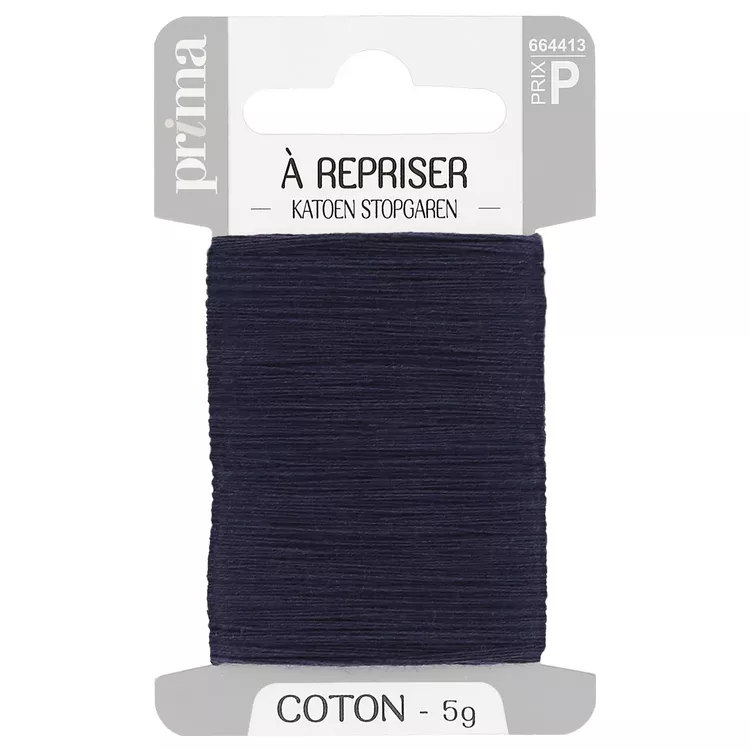 Coton à repriser marine 5g. Idéal pour repriser chaussettes et pulls en coton.