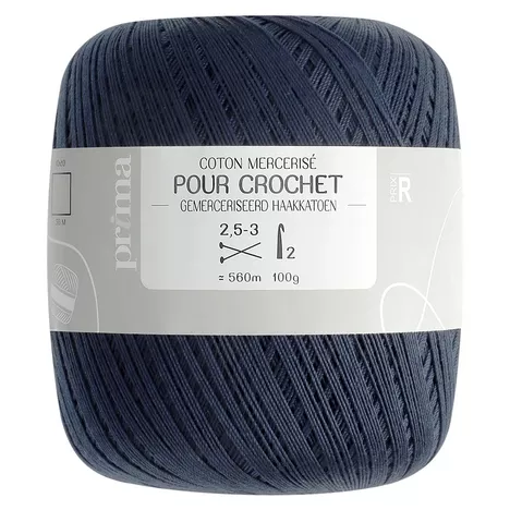 Coton mercerisé pour crochet bleu. 100 g. +/- 560 m.