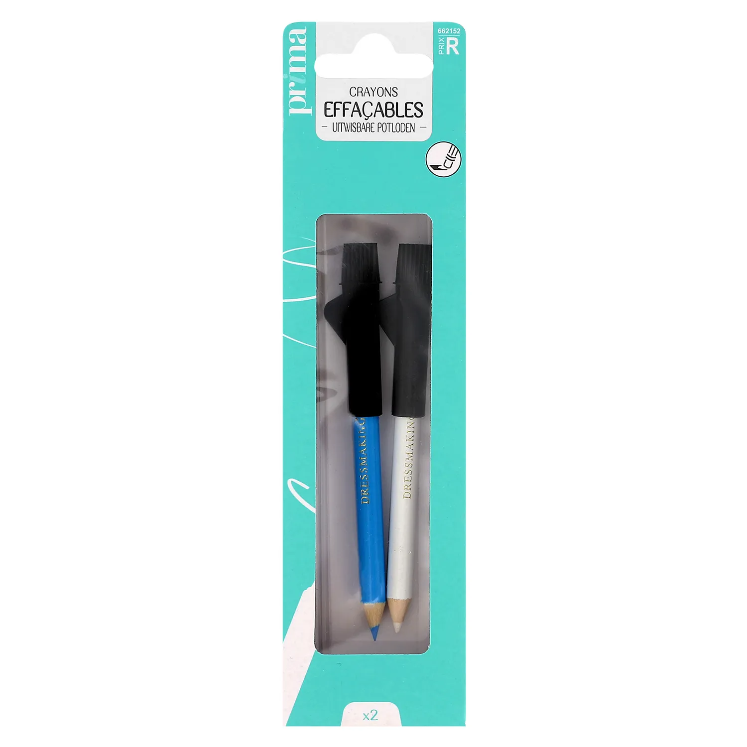 2 crayons effaçables. Permet de marquer les tissus avant découpe. Pour effacer le tracé, utilisez la petite brosse intégrée au crayon.