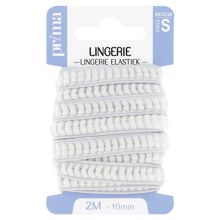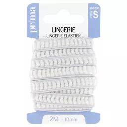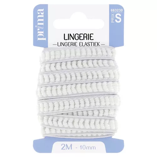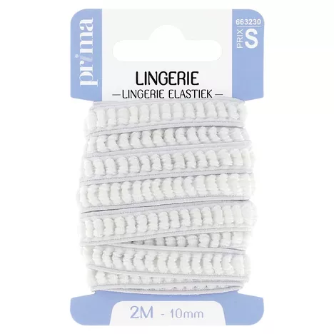 Elastique lingerie blanc. Taille 2 m x 10 mm. Doux et souple, cet élastique est idéal pour réparer la lingerie et pour confectionner les ceintures de jupons. Contient du latex. Déconseillé aux personnes allergiques.