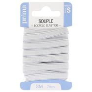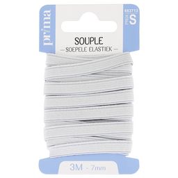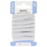 Elastique souple blanc. Taille 3m x 7mm. Plat et doux, cet élastique est recommandé pour les ceintures (jupes, pantalons, caleçons) ou l'ameublement. Existe en 20, 25 et 30 mm.