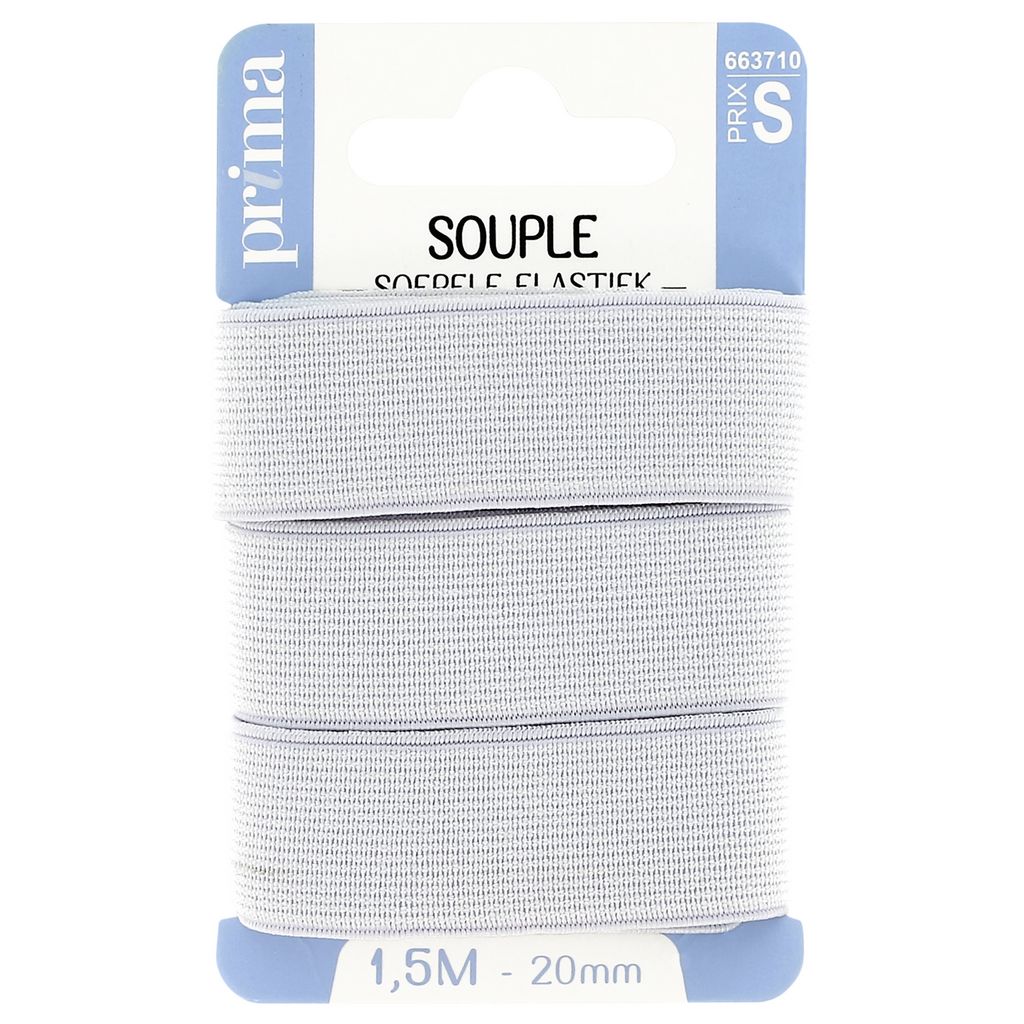 Elastique souple blanc. Taille 1m50 x 20mm. Plat et doux, cet élastique est recommandé pour les ceintures (jupes, pantalons, caleçons) ou l'ameublement. Existe en 20, 25 et 30 mm, Coloris blanc ou noir.