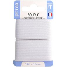 Elastique souple blanc. Taille 1 m x 30 mm. Fabrication française. Plat et doux, cet élastique est recommandé pour les ceintures (jupes, pantalons, caleçons) ou l'ameublement. Existe en coloris blanc ou noir.