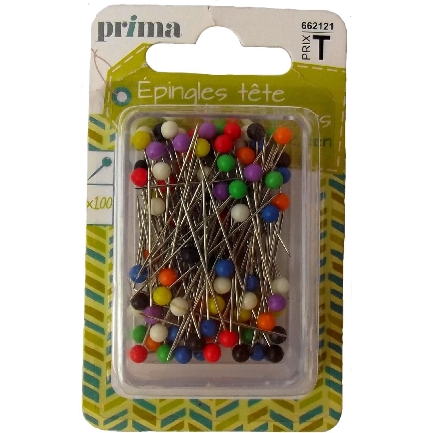 100 épingles tête de couleurs. Pour marquer un ourlet, assembler un ouvrage ou fixer un patron. Les épingles à tête colorées permettent un repérage plus facile.