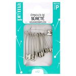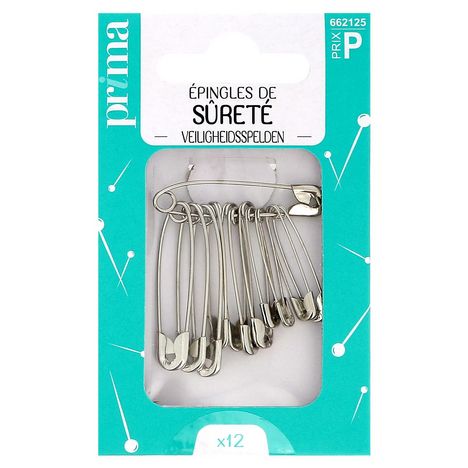 12 épingles de sûreté. Pour assembler ensemble des pièces de tissus, fixer des petits accessoires ou pour des dépannages de toutes sortes.