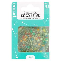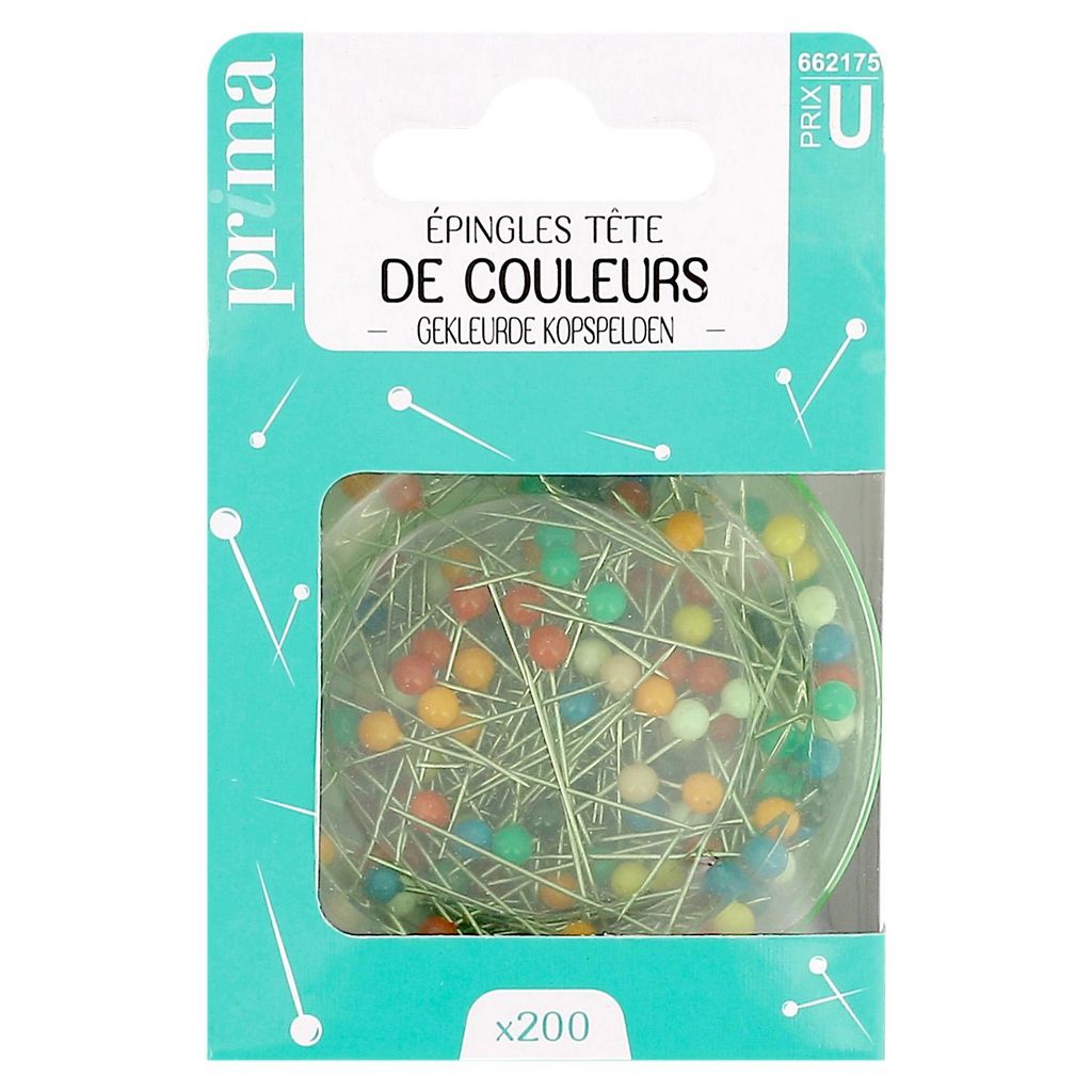 200 épingles tête couleurs. Pour marquer un ourlet, assembler un ouvrage ou fixer un patron. Les épingles à tête colorées permettent un repérage plus facile.