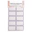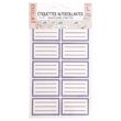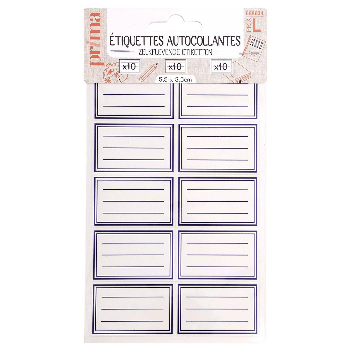 10 étiquettes par feuille, 3 feuilles par paquet (1 rouge, 1 bleu, 1 vert), base blanche 55x35 mm + lignes rouge foncé/bleu foncé / vert, colle