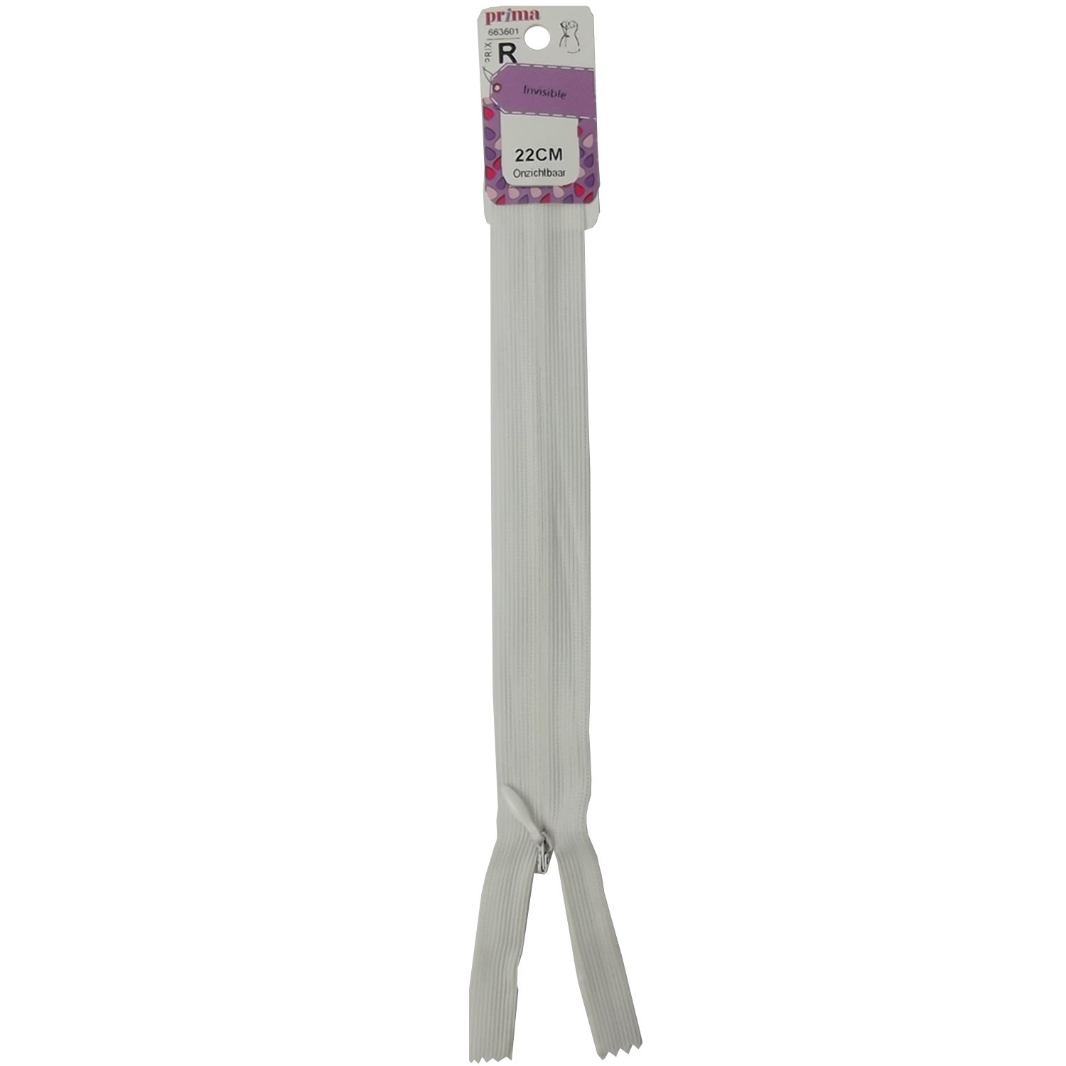 Fermeture à glissière invisible blanc. Taille 22 cm.