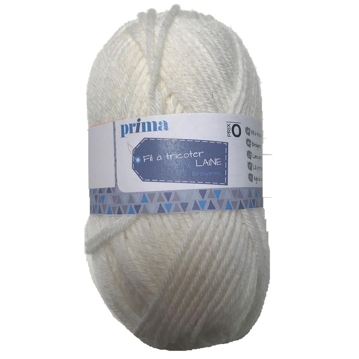 Fil à tricoter en LAINE blanc. 50 g. +/- 90 m.