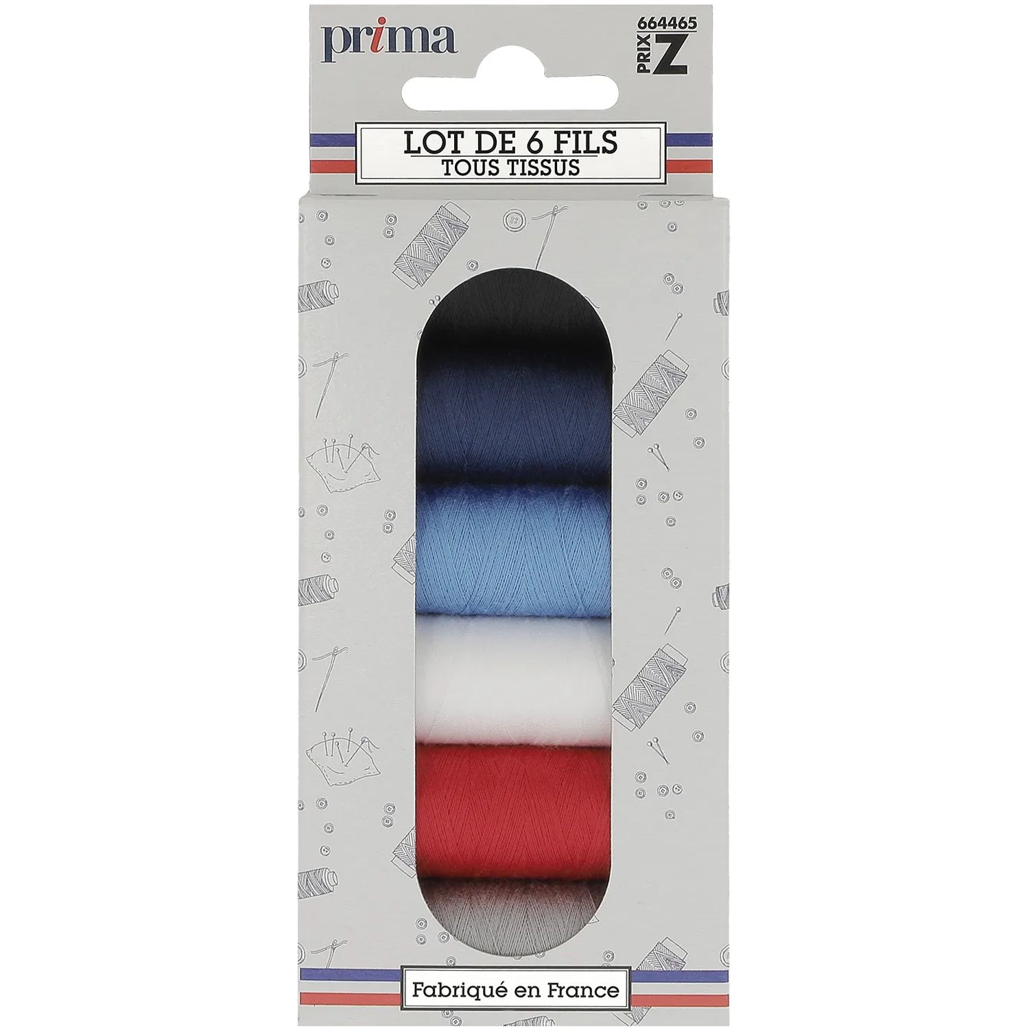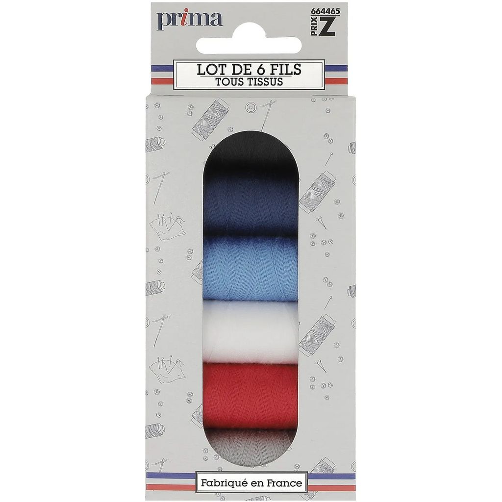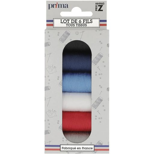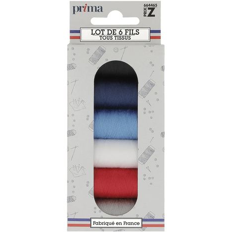 Découvrez le lot de 6 bobines de 200m polyester Prima Mercerie. Ce lot de fil est composés des coloris indispensables pour vos travaux de couture. Ces fils sont recommandés pour les tissus moyens et fins. Grâce aux bobines en carton vous pourrez dorénavant recycler vos bobines vides ! Coloris : Blanc, noir, marine, bleu moyen, rouge, gris; 100% polyester