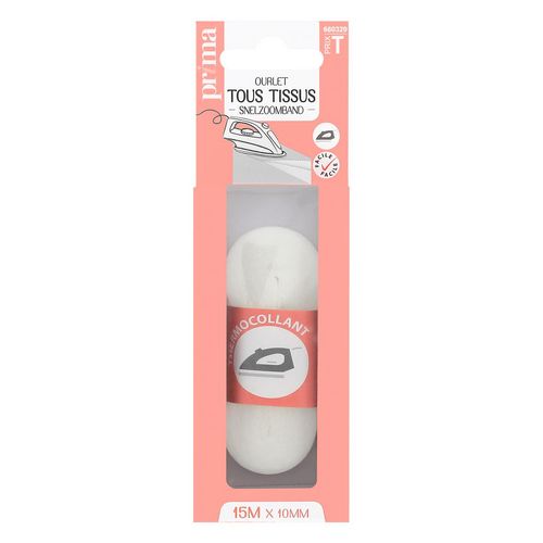 Voile thermocollant pour réaliser des ourlets sur des tissus supportant le repassage. 100% Polyamide. Dimensions : 15mx10mm