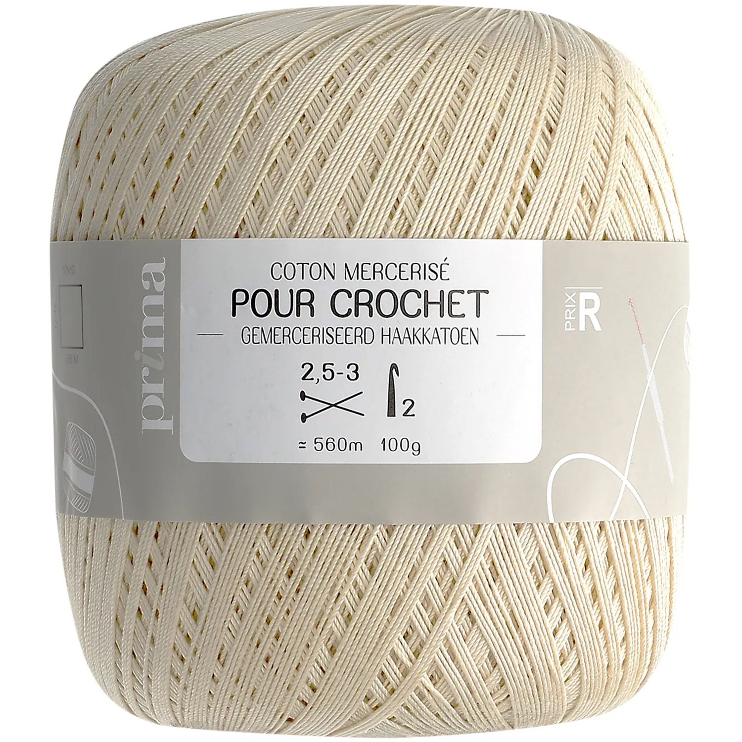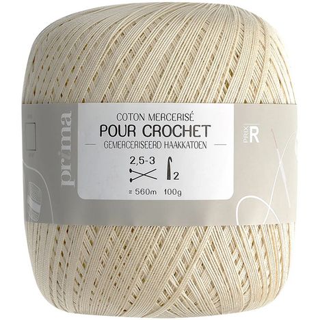 Coton mercerisé pour crochet écru. 100 g. +/- 560 m.