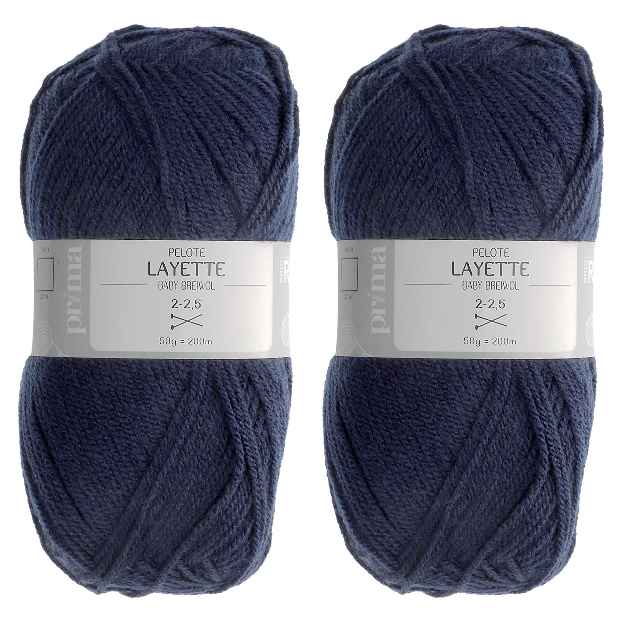 Lot de 2 pelotes layette bleu foncé. 50 g. +/- 200 m.