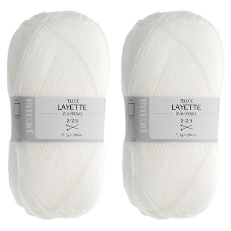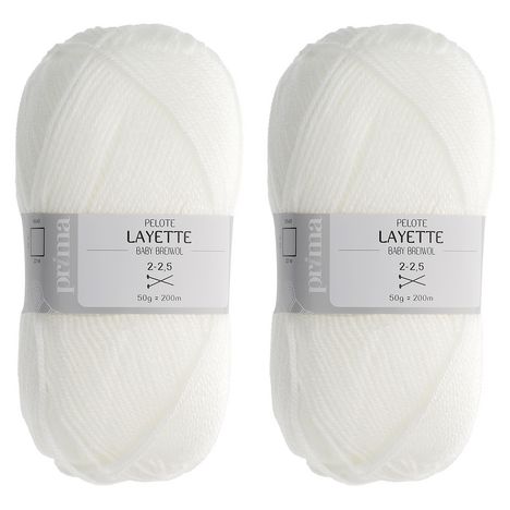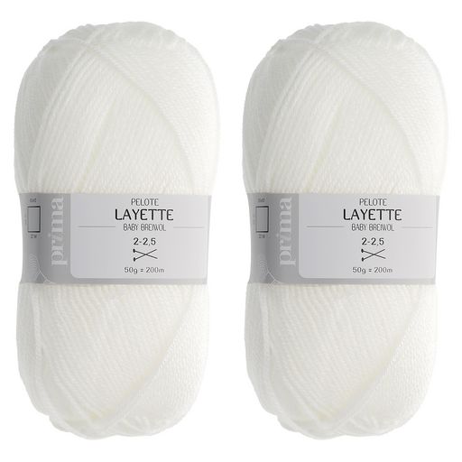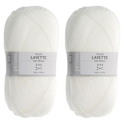 Lot de 2 pelotes Layettes 50g. Lavage à 30°C Composition : 100% Acrylique