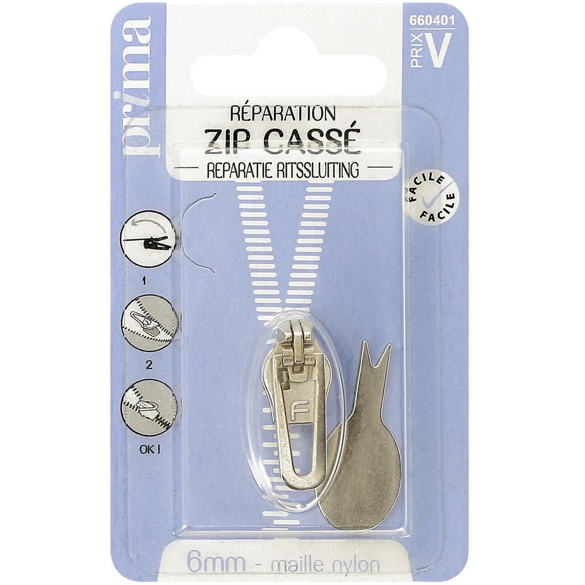 Réparation zip cassé 6mm maille nylon